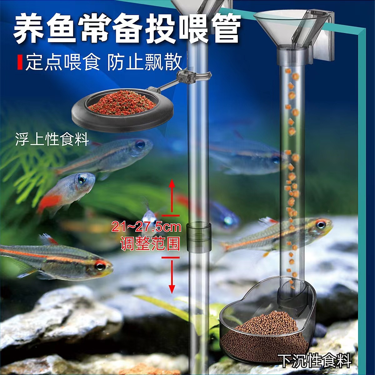水族の職人は魚の神器の多機能の水槽に餌を与えます。