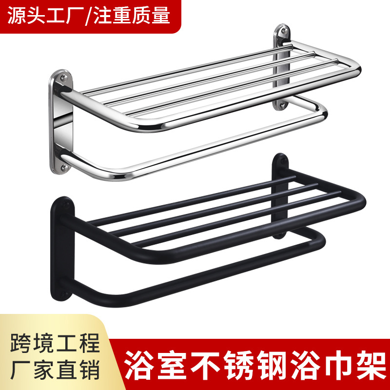 ホテルの浴室304ステンレス単層バスタオル棚民宿トイレの壁に黒い極めてシンプルなタオル棚
