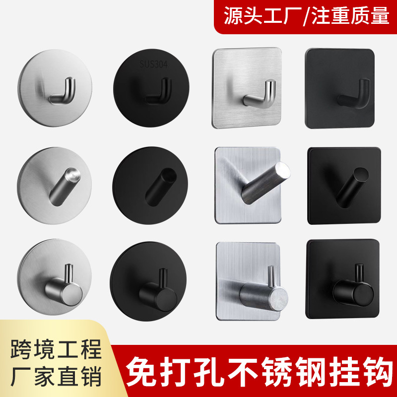 クロスボーダー台所ガード釘なしフック304ステンレス浴室フック穴なし黒色金属タオルフック台所接着