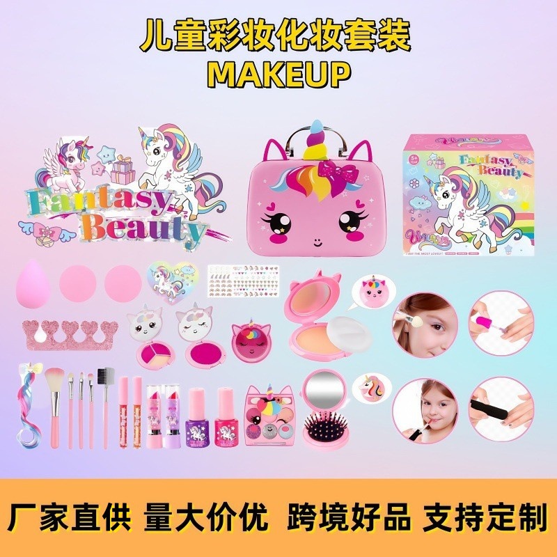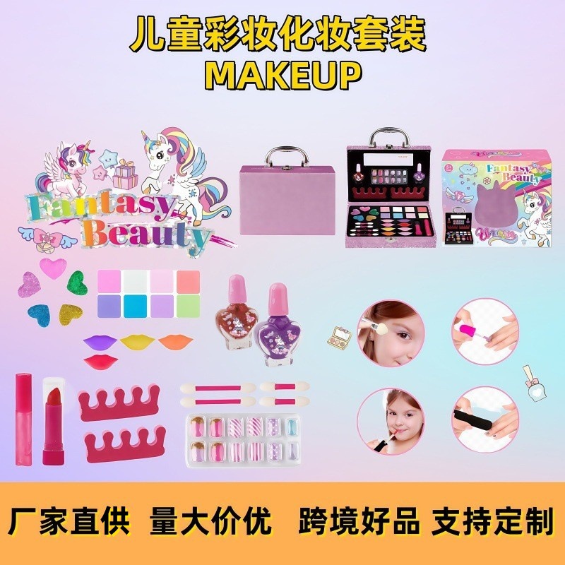クロスボーダー子供メイクアップマニキュア口紅女の子メイクおもちゃ箱入り女の子化粧品メイクボックスアマゾン