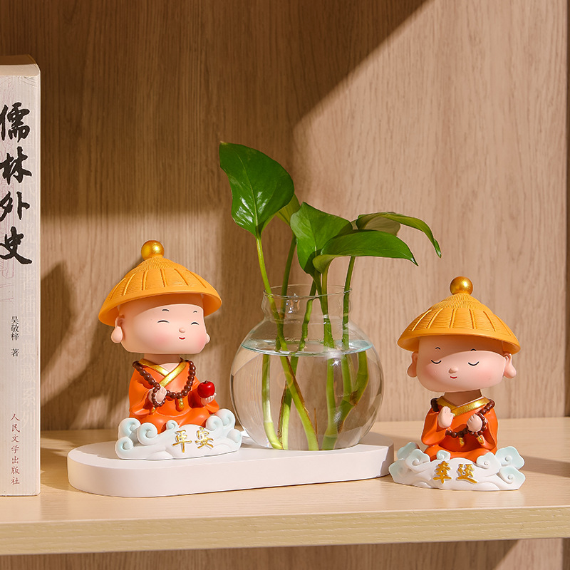 樹脂公仔四不和尚車載置物創意車内自動車装飾用品小僧車置物
