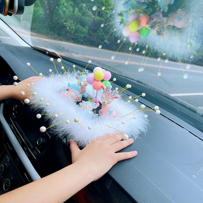 道中平安鹿自動車置物創意ネット紅車内アクセサリーかわいい男女車載センターコンソール装飾用品