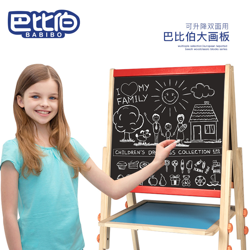 実木児童両面画板磁気スタンド式タブレット家庭用折り畳み昇降木製画画大黒板