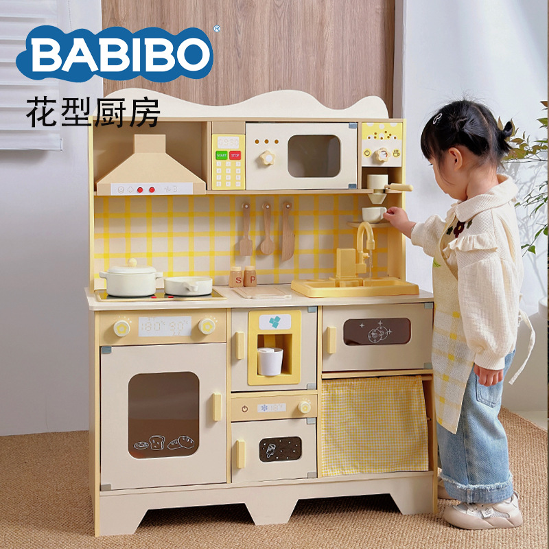 バービーバー木のままごとの台所のおもちゃの子供のシミュレーションの料理の遊園地の幼稚園の台所のおもちゃのセット