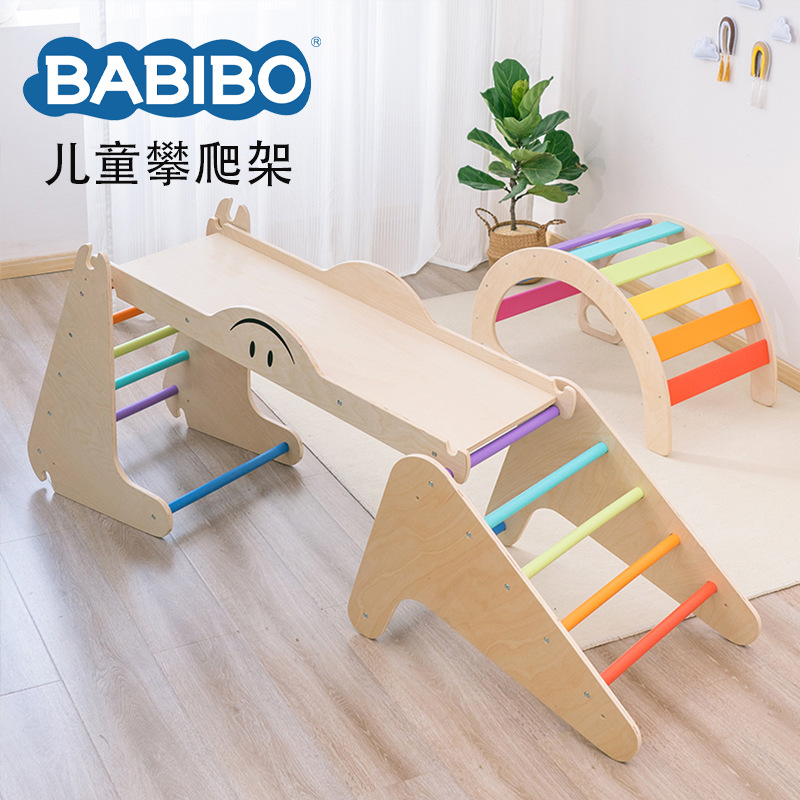 BABIBO木製クライミング子供の楽園感覚訓練クライミング室内多機能クライミング滑り台セット