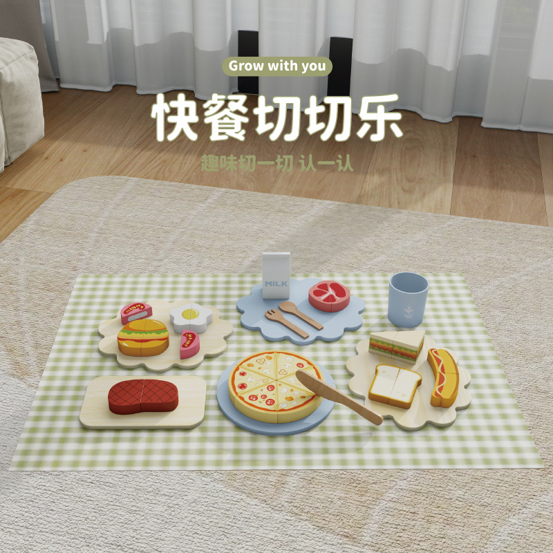BABIBO シミュレーションファーストフードバレルままごとおもちゃ木製ベビーシミュレーションカッティングセットおもちゃ