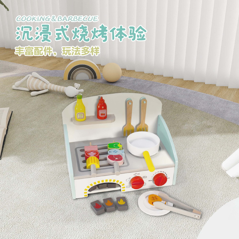 BABIBO 和風デスクトップバーベキューテーブル木製キッチンおもちゃままごとおもちゃバーベキューテーブルシミュレーション子供の料理