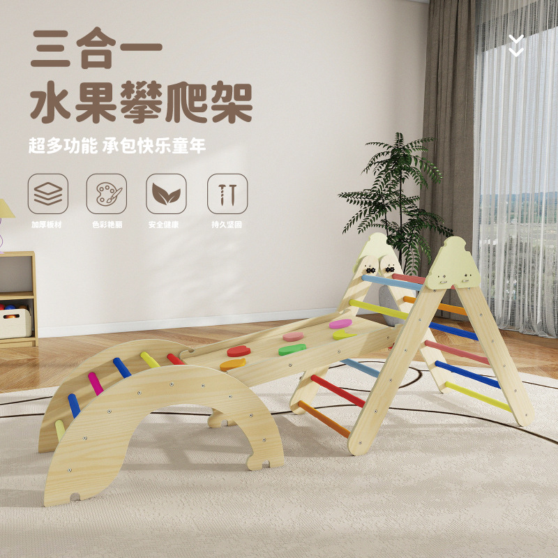 バービーバー木製の登山棚子供の楽園の感覚訓練登山棚室内多機能登山滑り台セット