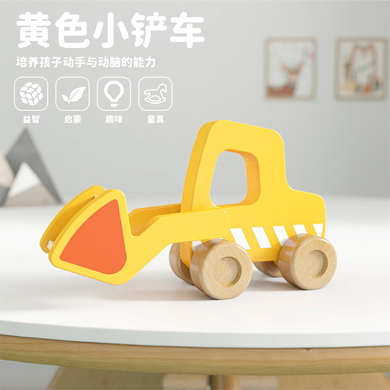 BABIBO 黄色小型フォークリフト無垢材把握幼児のおもちゃ幼児車早期教育知育玩具在庫あり