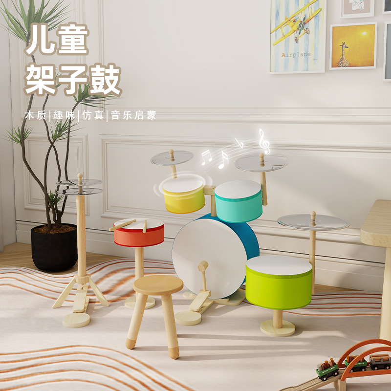 モンテッソーリ早期教育多機能ドラムセットベビー音楽知育玩具木製教育楽器クロスボーダー卸売