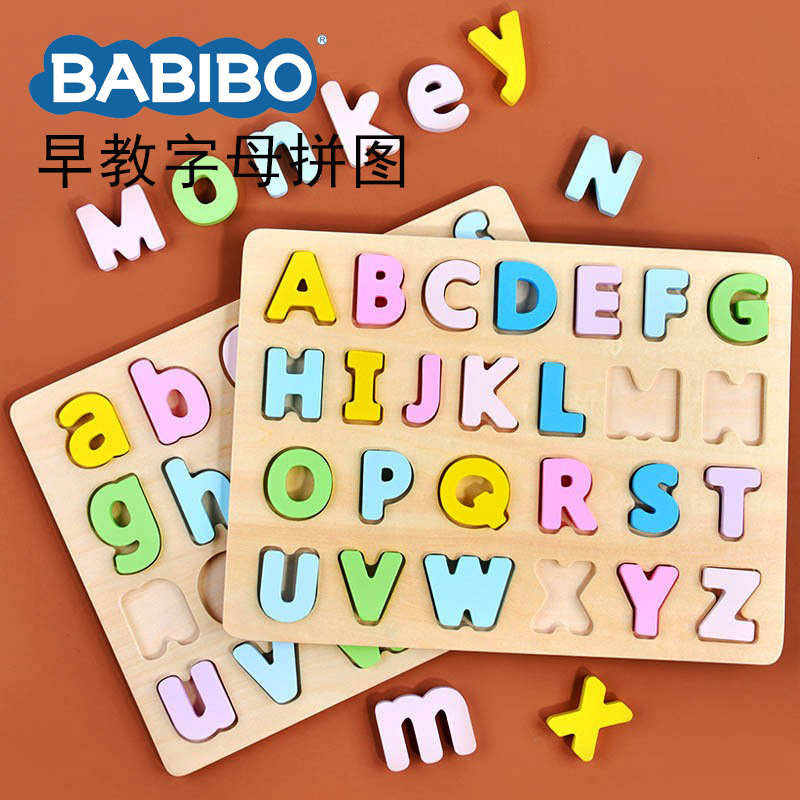 バビバーマカロン木製数字アルファベット形状認知パズルパズル版知育児童早教類玩具