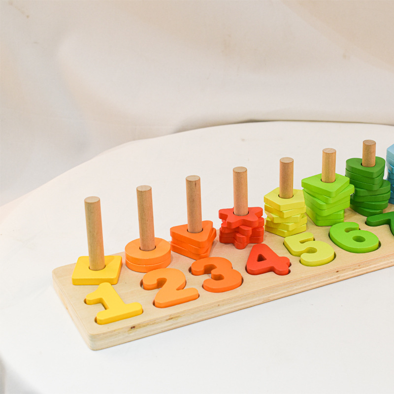 蒙氏早教赤ちゃん知育玩具多機能幾何学セット柱デジタル形状ペア二合一対数板
