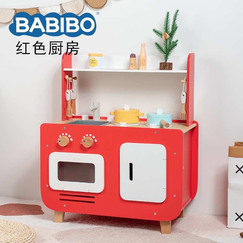 バービーバーの赤い小さい台所の子供はかまどの台所の男の子の赤ちゃんのままごとのおもちゃをシミュレーションして料理します。