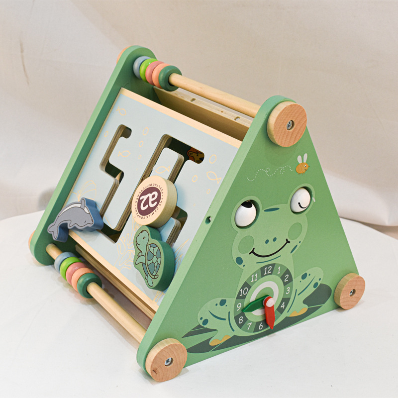 木の多機能の三角のゲームの箱の子供はビーズを巻いて対になってスライドの軌道を巻いて手を動かして脳を動かします。
