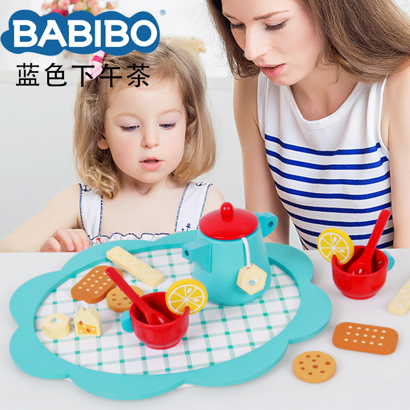 子供シミュレーションままごとブルーアフタヌーンティー認知玩具食品泡茶食器ロールプレイ木製玩具