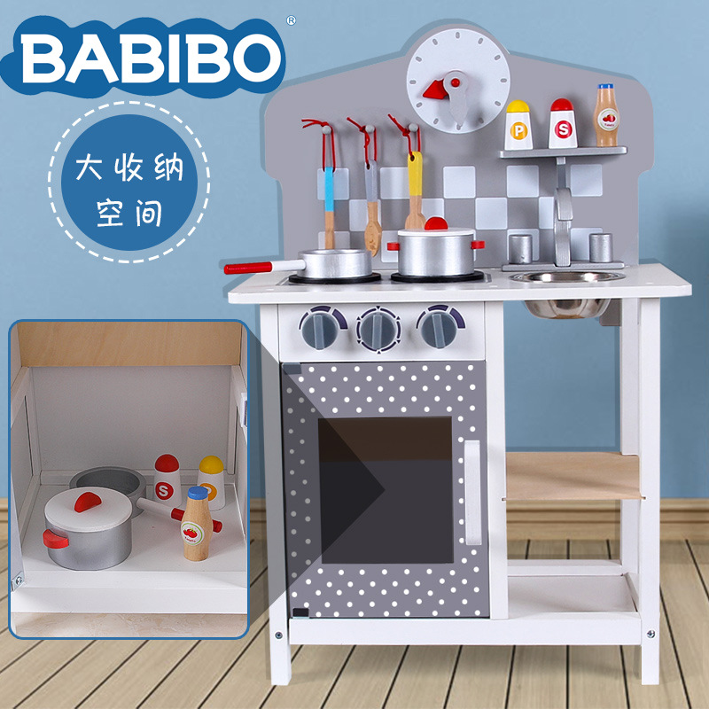 バービーバー木製男の子女の子ままごと新現代厨房子供切切楽料理玩具シミュレーションキッチン
