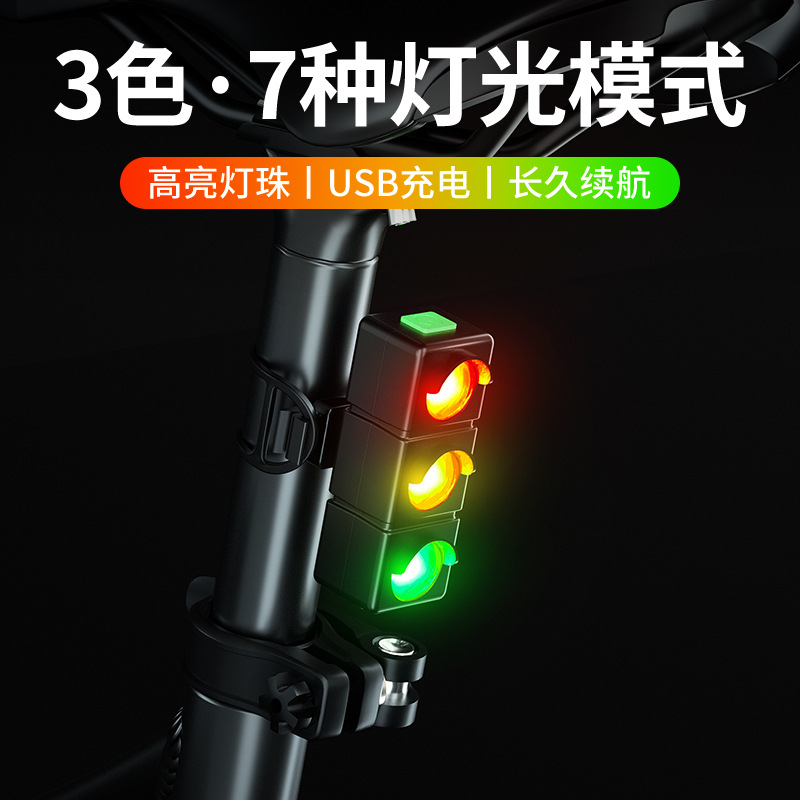 自転車のライトの創意的なテールランプの充電は夜に山岳道路の車に乗ります。自転車の後灯は装備部品を警告します。