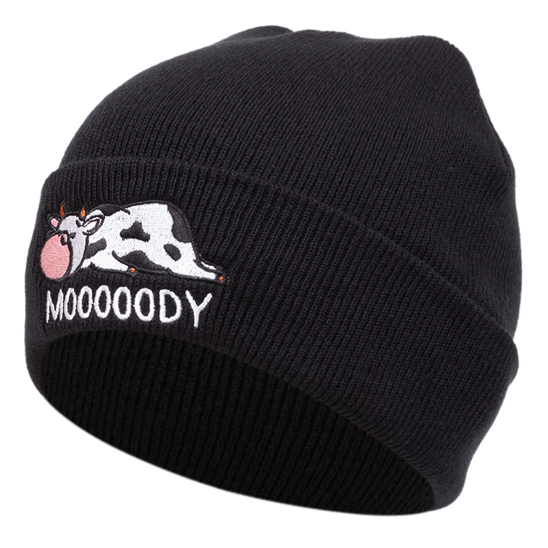 外国貿易の爆発金3d刺繍乳牛ニット帽秋冬保温男女屋外成人毛糸帽豆帽休