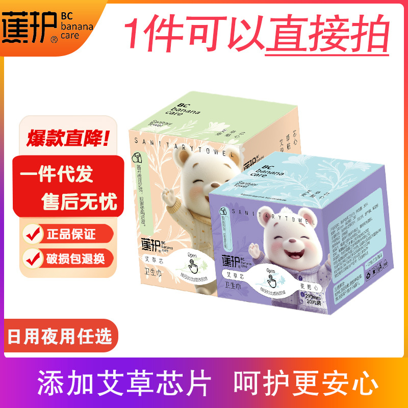 バナナ生理用ナプキン、新しくアップグレードされたヨモギ生理用ナプキン、毎日使用できる綿、柔らかく、軽くて通気性のある夜用生理用ナプキン