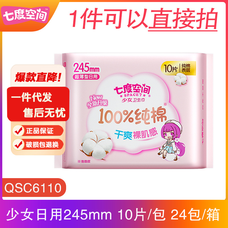 Seventh Space 生理用ナプキン QSC6110 ガールズ デイリーユース 245mm 軽量 通気性 漏れ防止 学生おばさんナプキン 正規品