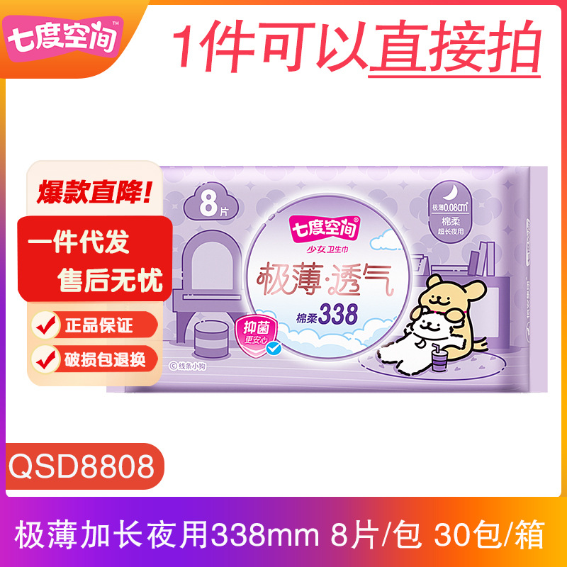 七度空間生理用ナプキンQSD8808少女シリーズ極薄通気綿柔超長夜用338mm叔母タオル
