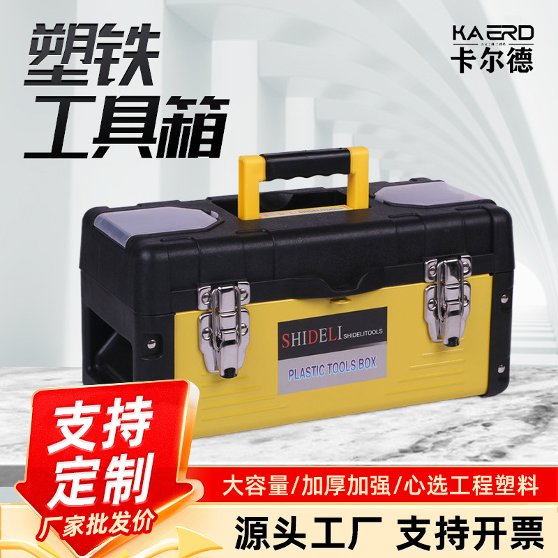ツールボックスメーカー卸売り17インチ中号プラスチック鉄ツールボックス家庭用車載プラスチック鉄ツールボックス
