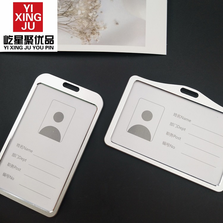 Ins風銀灰アルミニウム合金は高級感創意学生愛豆小カードフォトフレームストラップカードカバー作業証です。
