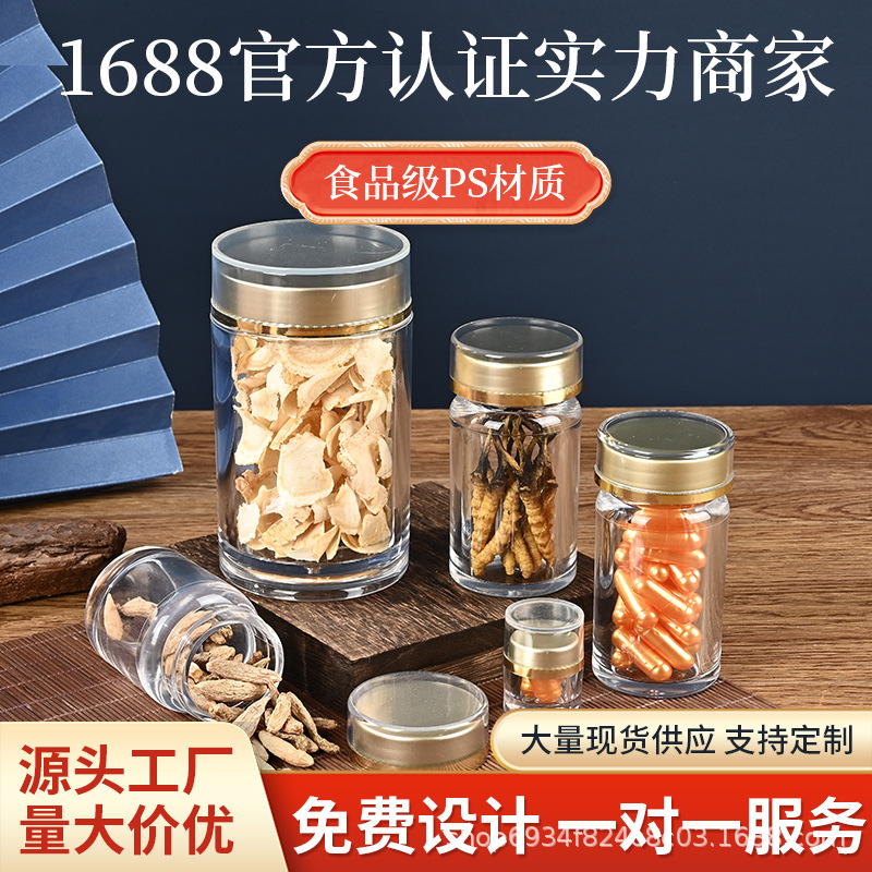 PS食品級アクリル密封缶西洋参虫草カプセル瓶漢方薬分注瓶包装瓶卸売り