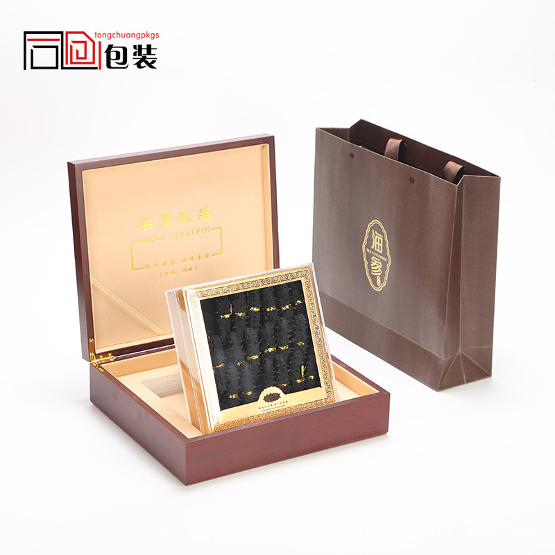 卸売りのツバメの巣の包装箱の高級な木製のギフトボックスの100g 200gの漆の木の箱の包装箱の空の箱の透明な箱