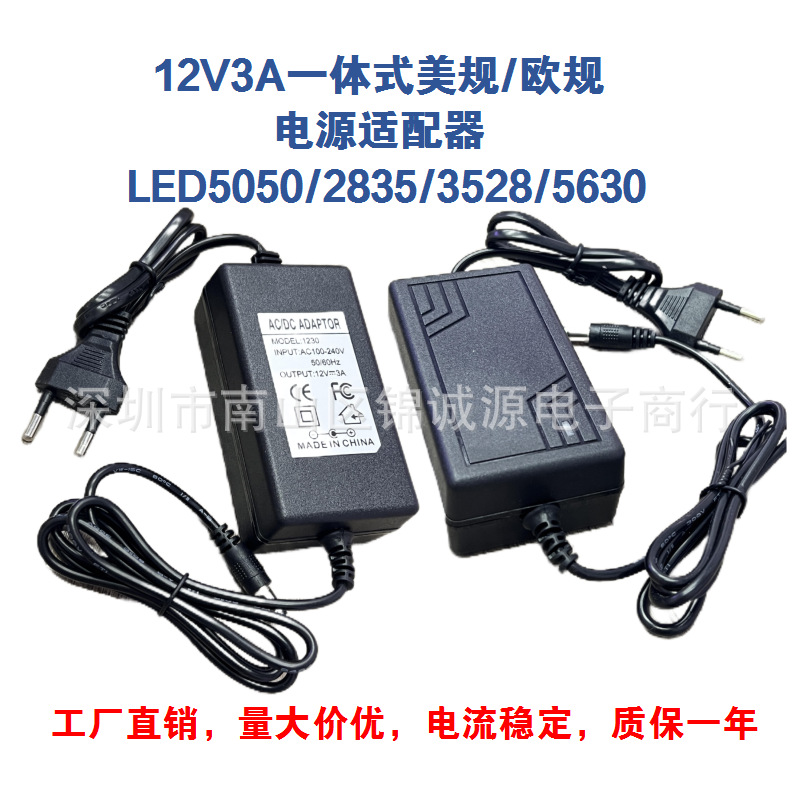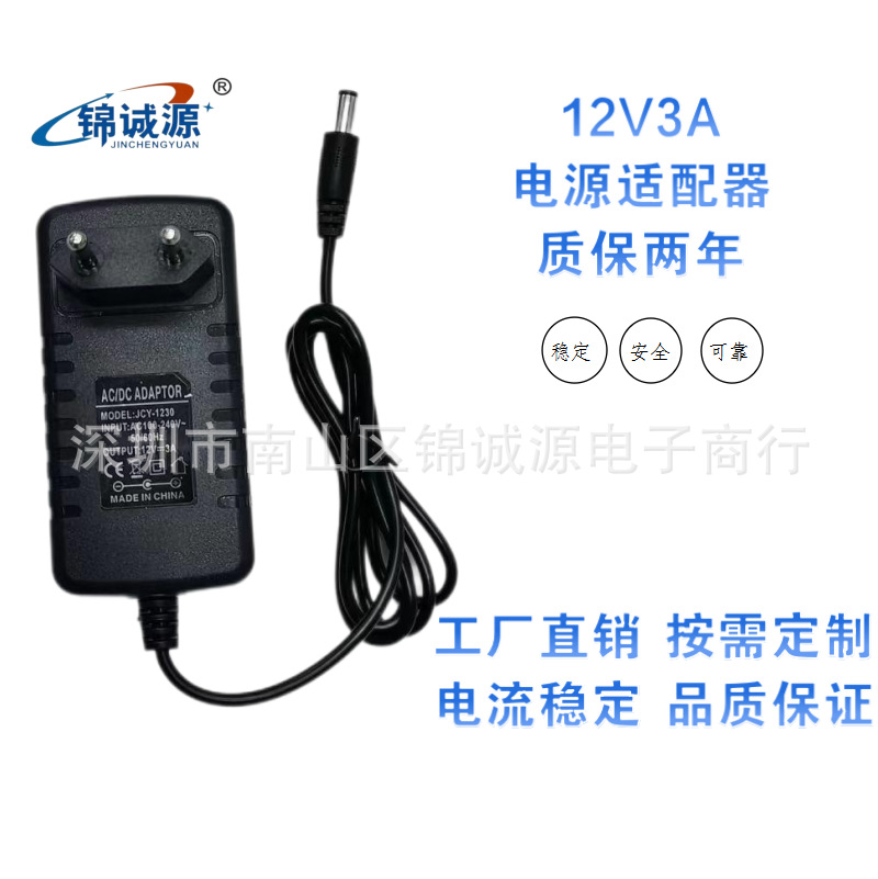 12V3A一体二重線ヨーロッパ規格電源アダプタLEDランプ監視ディスプレイ電源12v3a