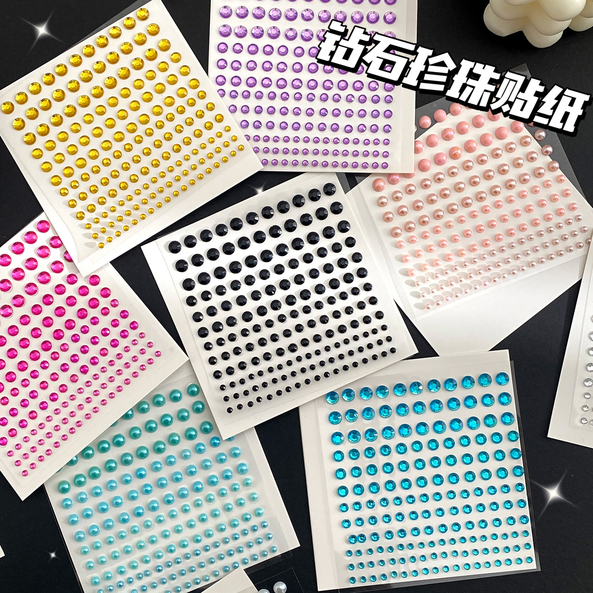 Ins风ダイヤモンドパールステッカー子供女の子メイク颜ステッカーラウンドクリスタルdiyパールネイルアート奨励ステッカー