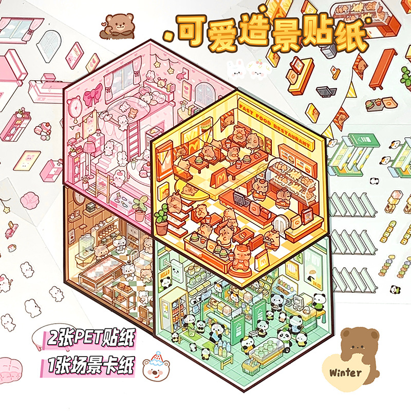 新品2.0ミニチュアシーンステッカー造景ミニストレス解消手作りステッカー2.5D造景diy手作りステッカー