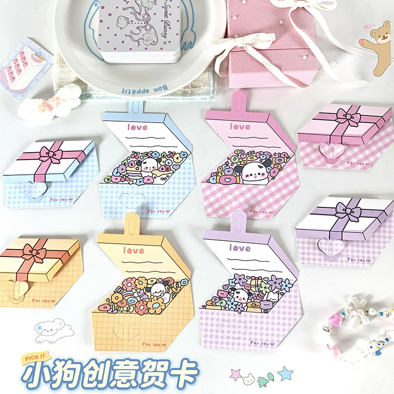 Insかわいいプルサプライズカード七夕カップル手作り立体祝福便箋漫画子犬誕生日カード