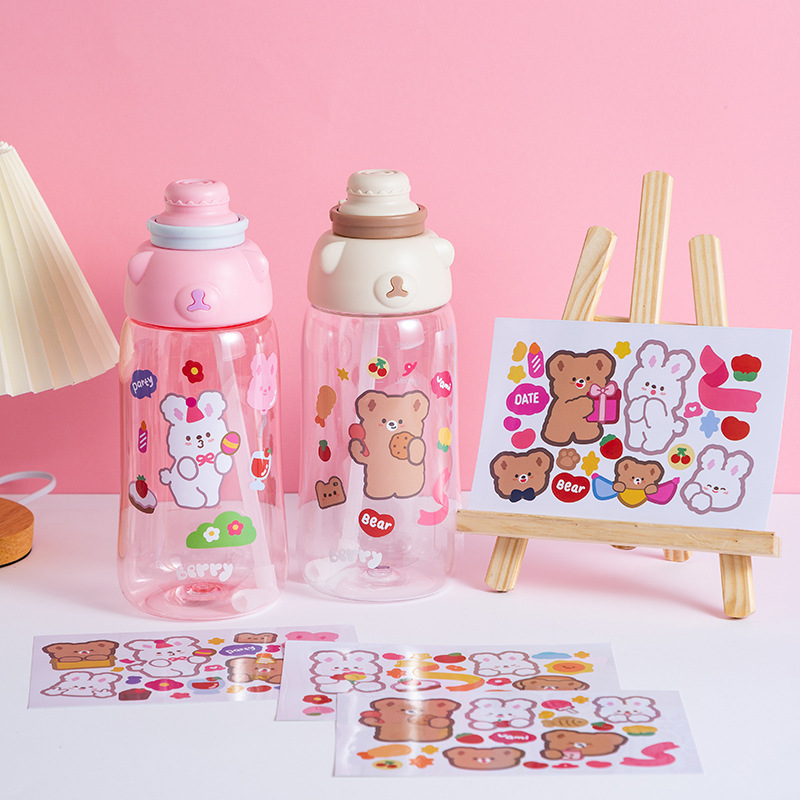 韓国ins風オリジナルかわいいアニメ熊ウサギ保温カップコップシール防水pvcノートシール