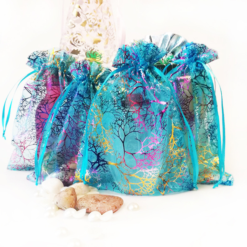 メーカー卸売り13*18cmサンゴ模様糸袋クリスマスプレゼントアクセサリー包装袋欧根糸袋