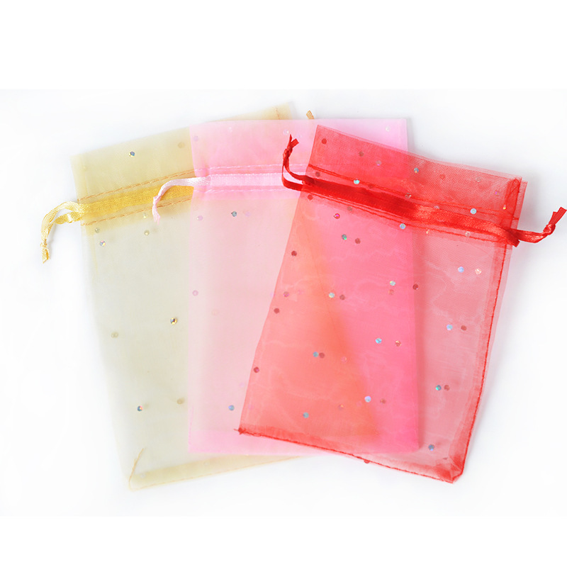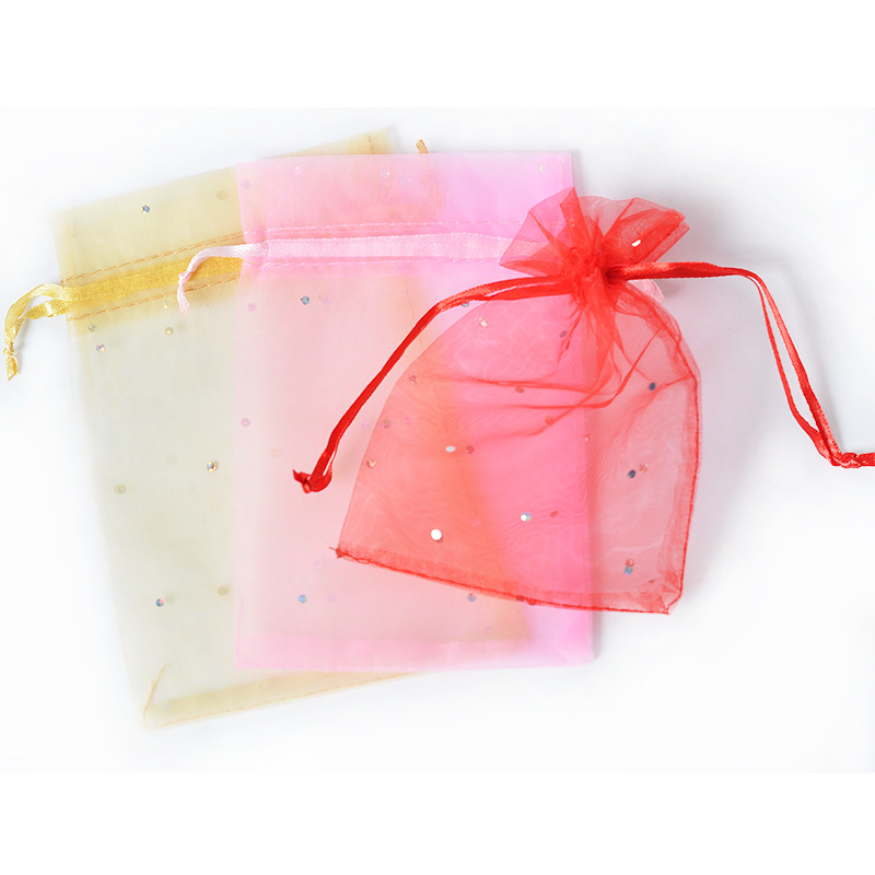 卸売りスパンコールガーゼアクセサリー包装ガーゼ10*15包装ガーゼ袋束口収納透明ガーゼ袋欧根糸
