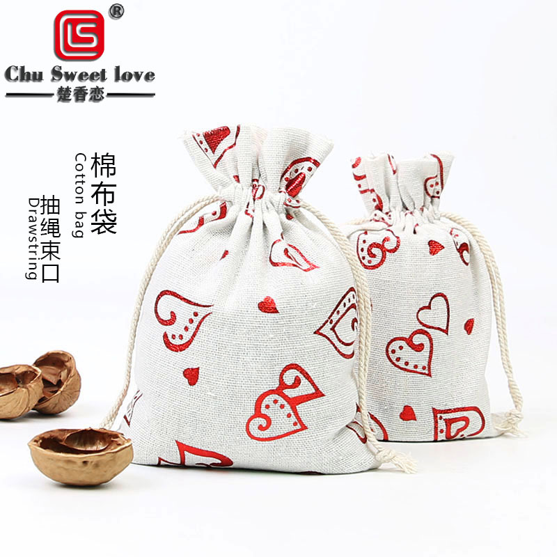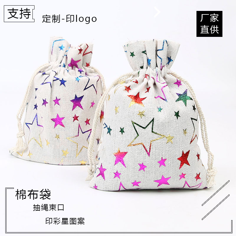 現物束口綿布袋ギフトバッグ箔押し模様熱転写包装ロープ収納袋13*18
