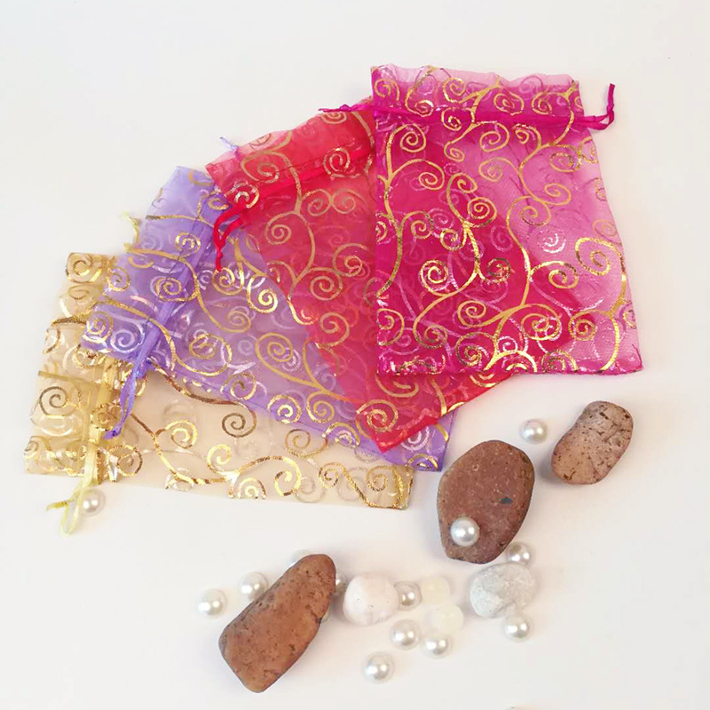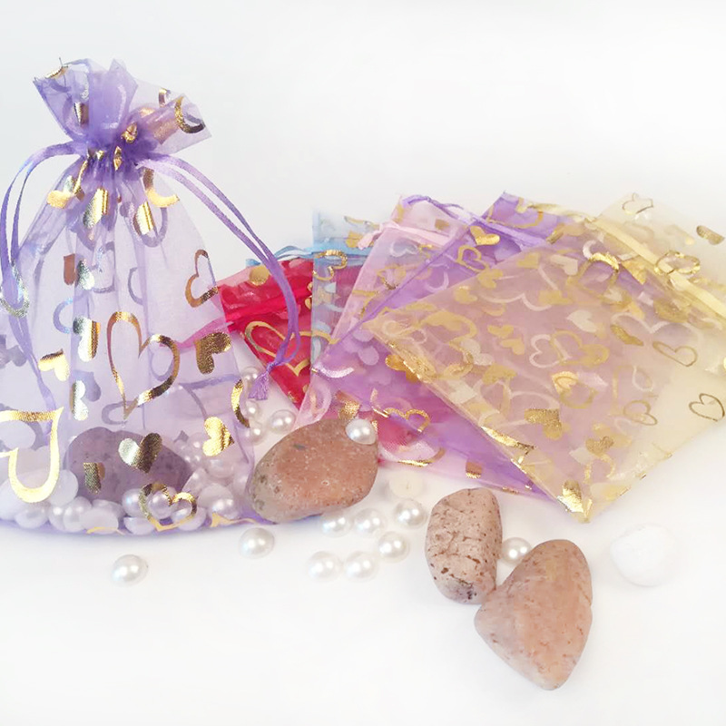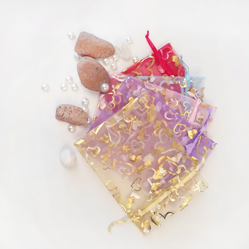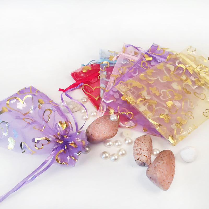 卸売りは金の紗の袋にアイロンをかけます。愛ハート型の紗の袋は口の網の紗の袋の小さい贈り物の包装の紗の袋の透明な紗の袋を結びます。