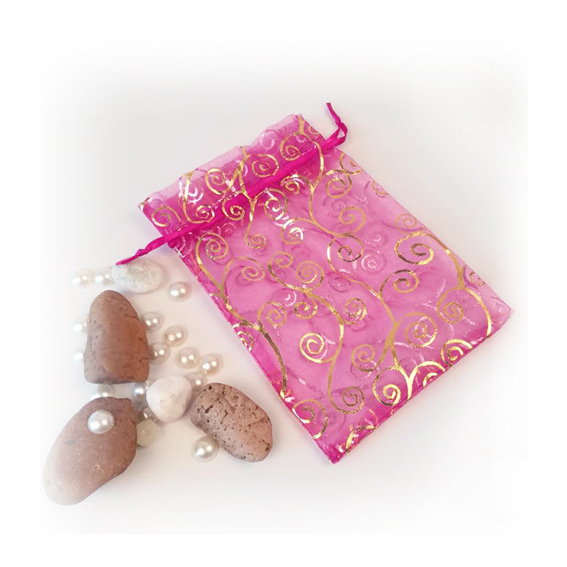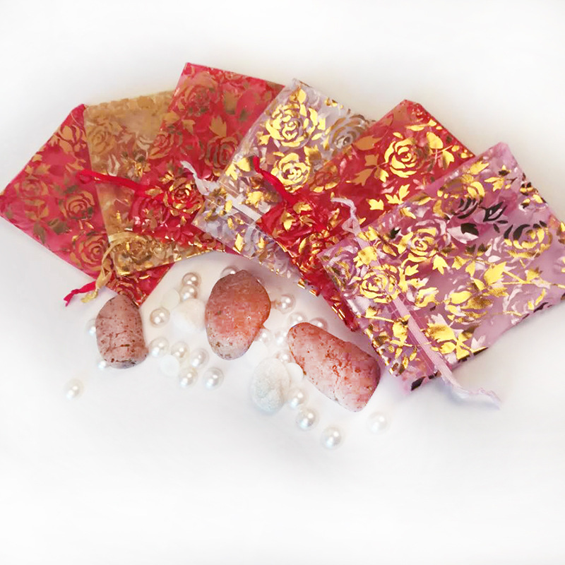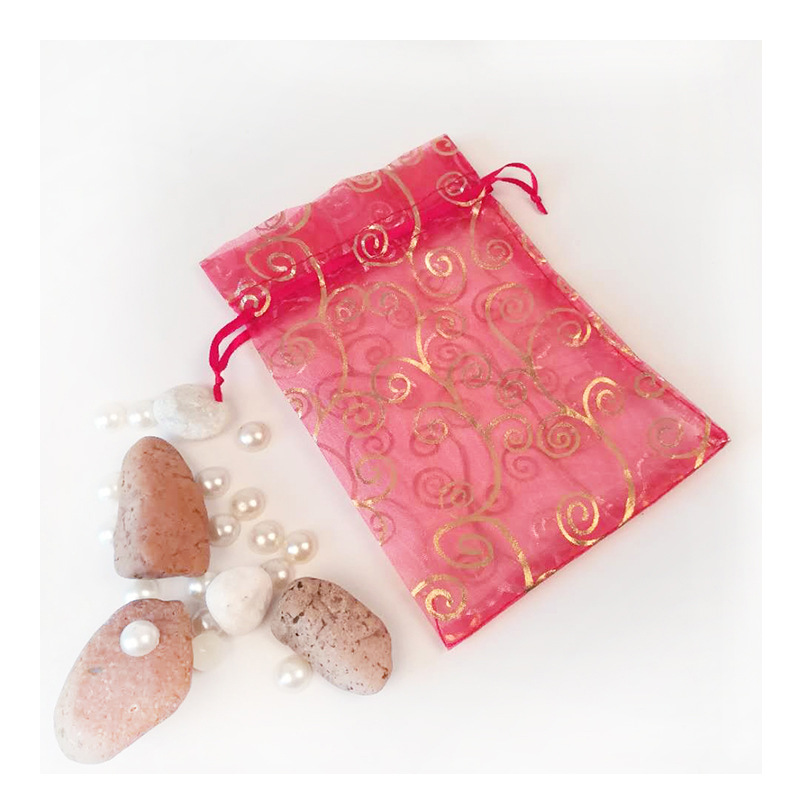 メッシュバッグ、金箔押し、銀箔押し、ハート型、桃心型、バラの花柄、メッシュバッグ、ジュエリーバッグ、巾着袋、雪紗バッグ、オーガンジー袋