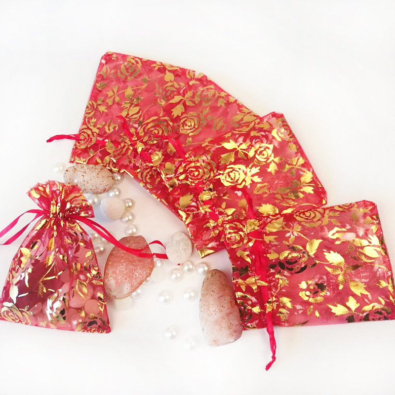 箔押し袋バラの形のガーゼ袋カスタム束口ネットガーゼ袋小プレゼント包装ガーゼ袋品ガーゼ袋