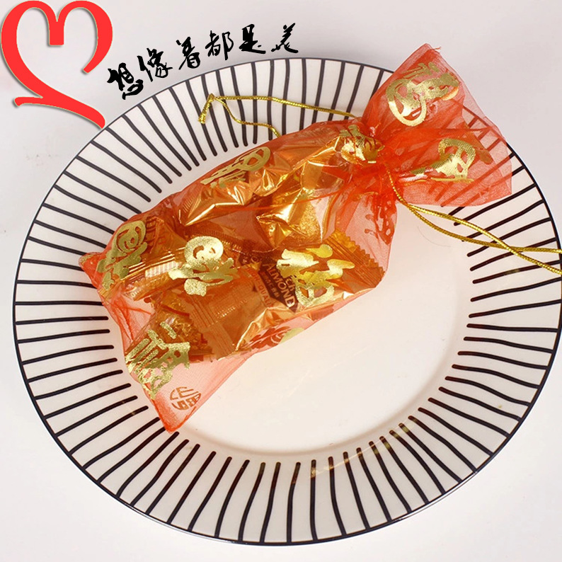 結婚式の赤い欧根紗喜糖紗袋の個性的な創意的な結婚式のお返しの紗袋は金喜字の小さいサイズの紗袋にアイロンをかけます。