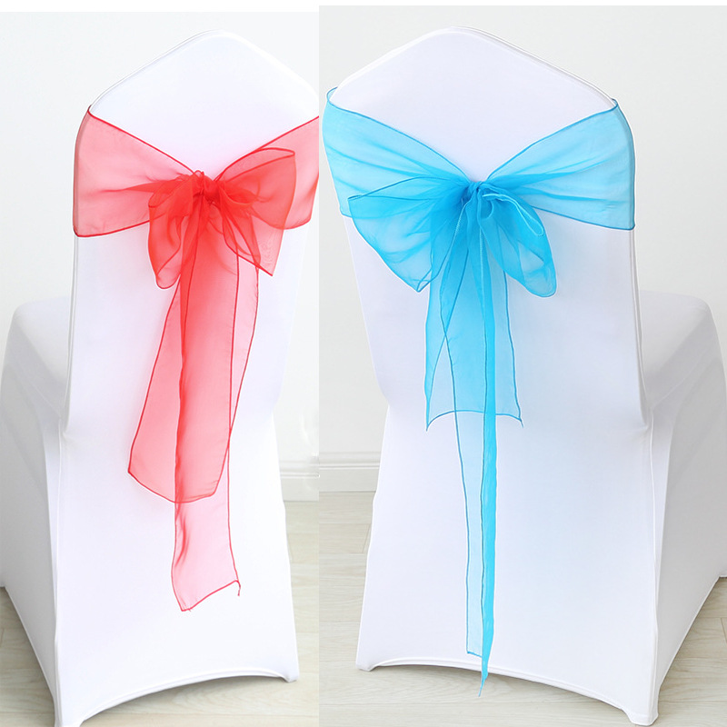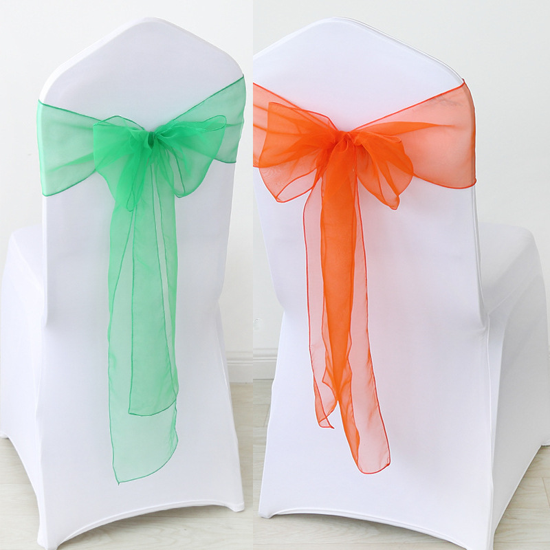卸売りの欧根紗の結婚祝いの背もたれの装飾は蝶結びのホテルの宴会の薄い紗の背もたれの蝶結びの装飾を結びます。