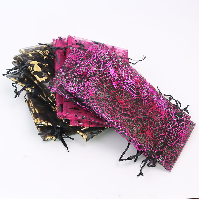 ハロウィーンの束口プレゼントのガーゼ袋と金の蜘蛛の巣の鬼節の逸品の束口ガーゼ袋の卸売りはカスタマイズをサポートします。