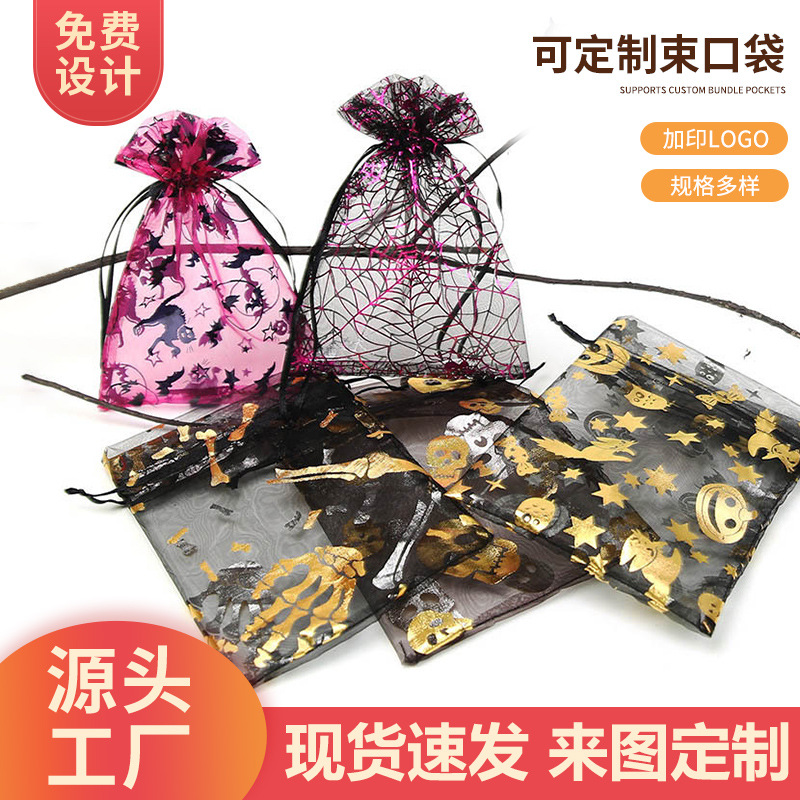 ハロウィーンの束口プレゼントのガーゼ袋15*23cm箔押し鬼節精品束口ガーゼ袋卸売り