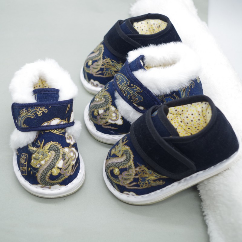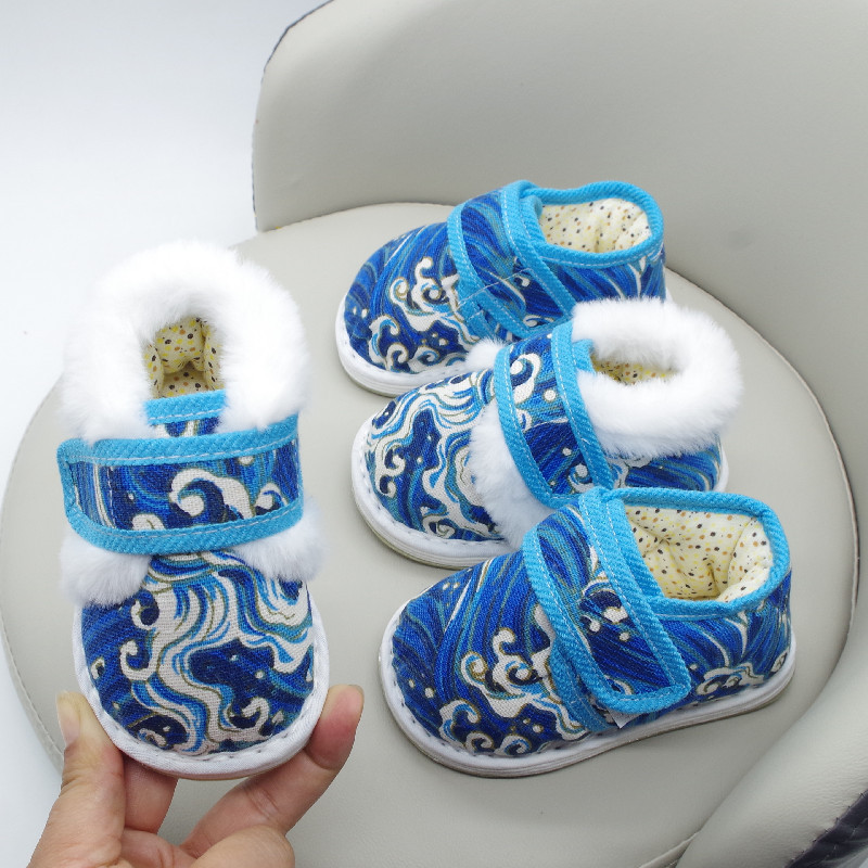 冬の赤ちゃんの綿の靴の漢服の靴の古風の千層の底の子供の手の布の靴の満1歳の絹織物は厚くて暖かいです。