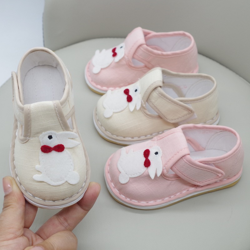 子供の手作りの布の靴の伝統の千層の底の漫画のウサギの0-3歳の2赤ちゃんは歩くことを学んで汗を吸います。