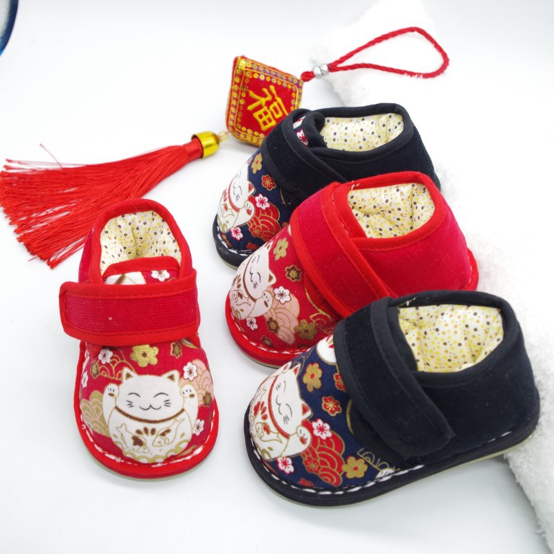 子供の手作りの布の靴の綿の靴の伝統の千層の底の漢服の靴の女性の0-3歳の赤ちゃんは周歳の靴の冬を学びます。