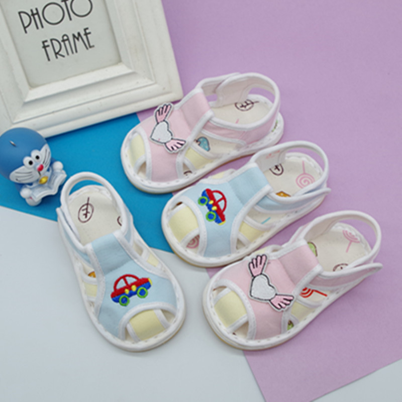 赤ちゃんの手作りの布のサンダルの千層の底の漫画は汗を吸います。