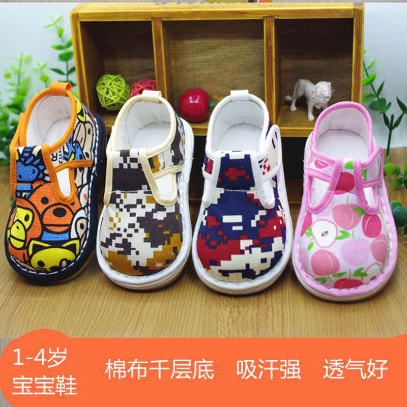 卸売り児童手作り千層底布靴春秋1-3歳2男女宝綿布吸汗伝統老布靴学歩