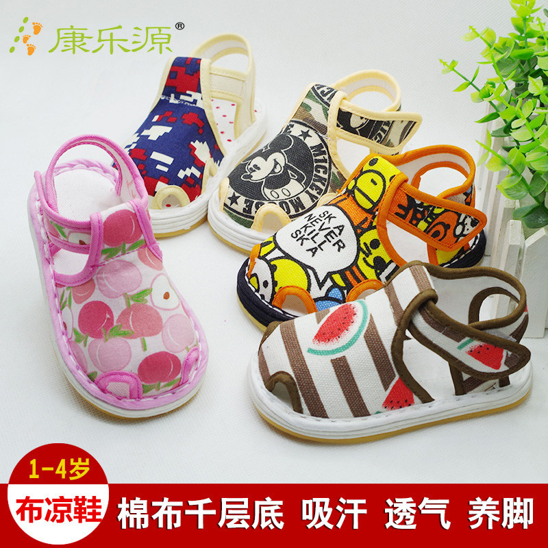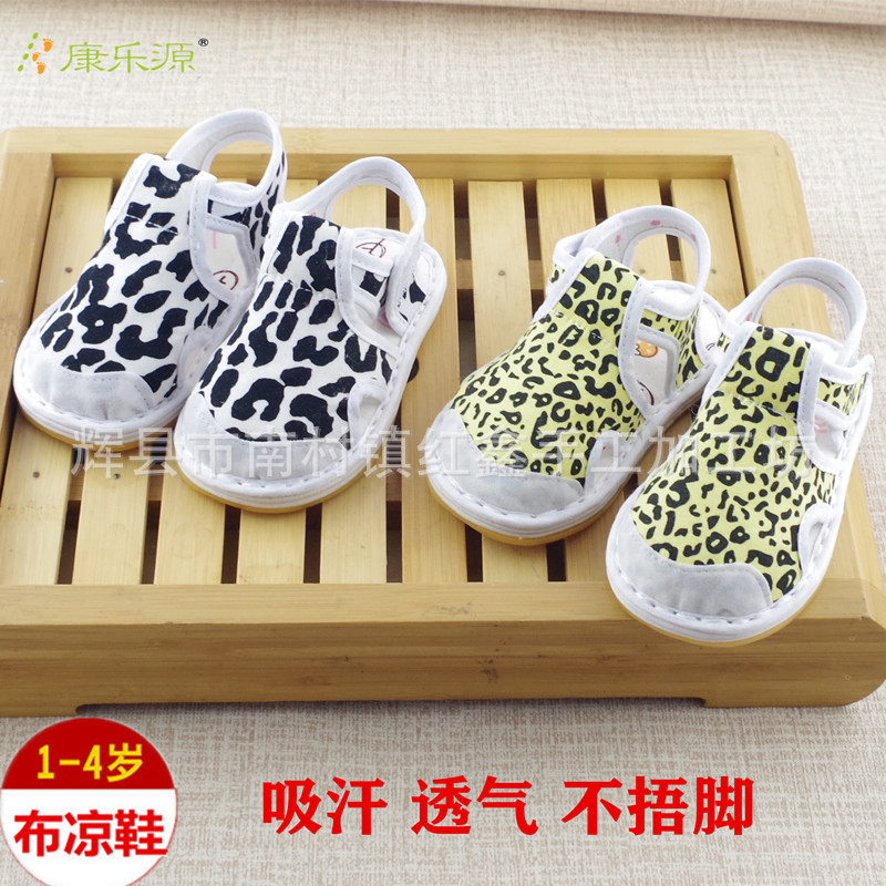 康楽源子供手作り布靴男春夏1-3歳赤ちゃん千層底サンダル吸汗伝統北京豹紋